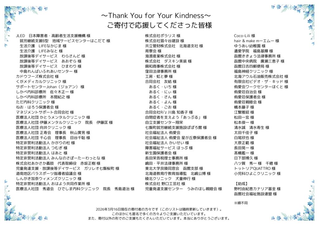 世界自閉症啓発デー in Hakodate 2026の開催にご協力を頂きました皆様のお名前は、こちらからご確認いただけます。