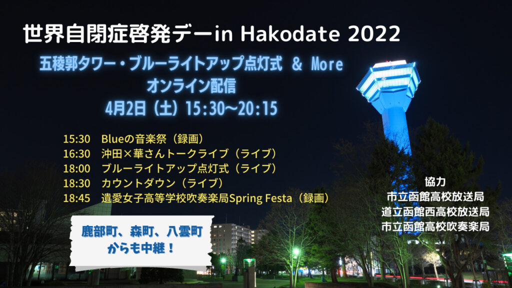 昨年、吹奏楽コンクール全道大会で金賞を受賞した遺愛女子高等学校の吹奏楽局が、世界自閉症啓発デーのために演奏してくれます。感染対策を徹底し会場でのライブコンサートを行うほか、世界自閉症啓発デー in Hakodate公式YouTubeチャンネルでのライブ配信、さらに同日の五稜郭タワー・ブルーライトアップ点灯式とあわせて録画を配信します。